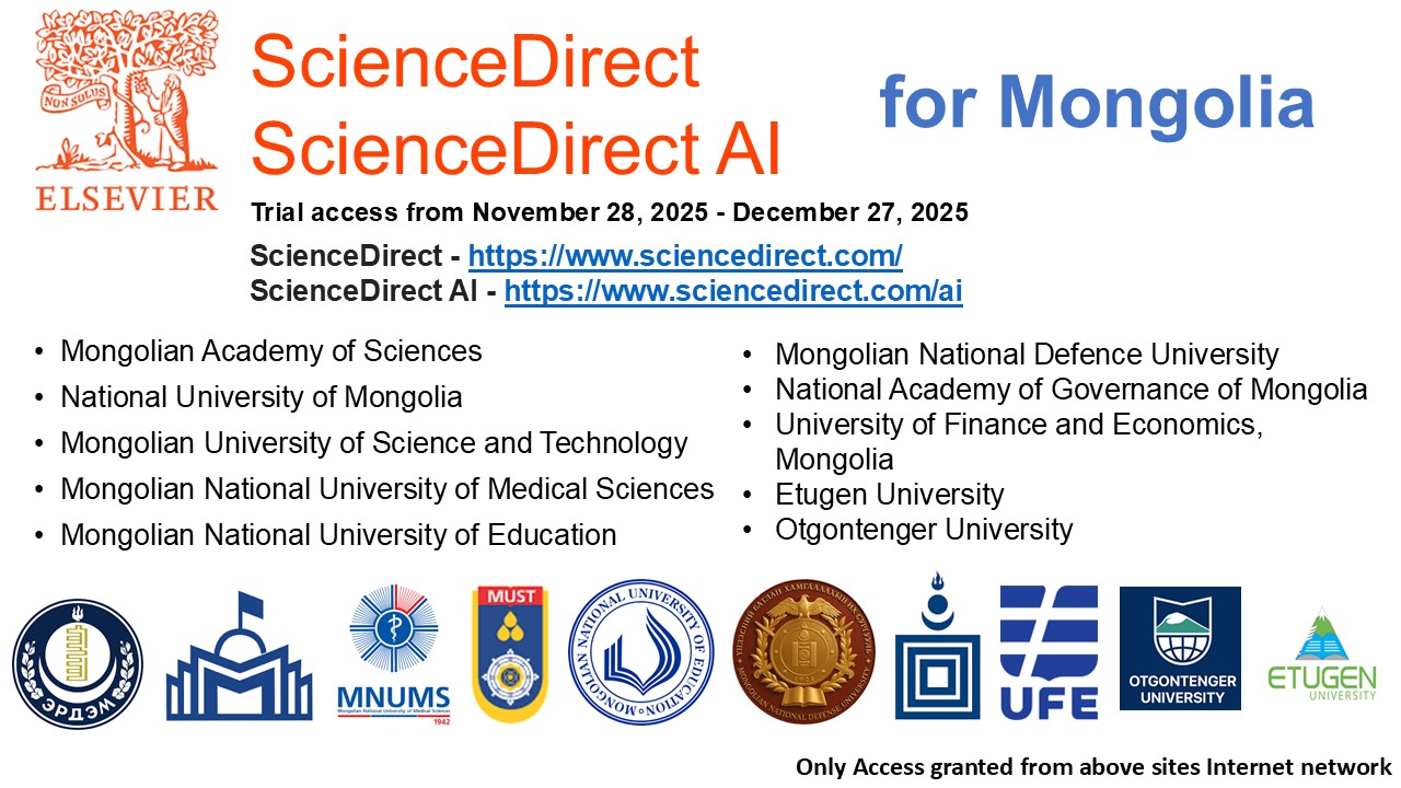 Дэлхийн тэргүүлэх шинжлэх ухааны хэвлэлийн корпораци Elsevier-ийн ScienceDirect, ScienceDirect AI платформуудыг 2025 оны 11-р сарын 28-аас 2025 оны оны 12-р сарын 27-ны өдрийг хүртэл туршилтаар ашиглах боломжийг нээж байна.