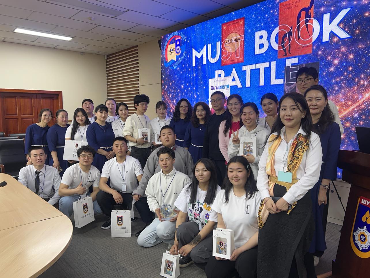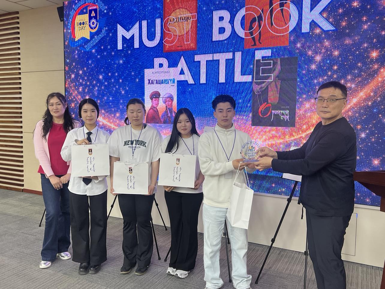 Ном унших дуртай уншигчдадаа зориулан “BOOK BATTLE” сэдэвт шинэлэг арга хэмжээг санаачлан зохион байгууллаа. Нийт 4 хүний бүрэлдэхүүнтэй 4 баг оролцож авхаалж самбаа, ур чадвараа сорин өрсөлдлөө. Уг тэмцээнийг удирдамжийн дагуу “Алхимич”, “Оройгүй сүм”, “Хагацашгүй”, “Хайрын сүмээс дүрвэгсэд” зохиолуудыг уншиж эх зохиолтой ажиллах, илтгэх чадвар, уран төсөөлөл, авхаалж самбаагаараа өрсөлдөн 1-р байрт Г.Ганцоож ахлагчтай “Тэмүүлэл” баг /багийн гишүүд Г.Ганцоож, Б.Мөнхтуяа, Г.Үлэмж, Э.Номин-Эрдэнэ/, 2-р байрт Д.Самбаасүндэв ахлагчтай “Маргааны манлай” баг /багийн гишүүд Д.Самбаасүндэв, Т.Жамбалдорж, М.Нармандах, Л.Золбоо/ шалгарлаа. Шүүгчээр НХС-ийн багш доктор /Ph.D/, дэд профессор Д.Сэрдарам, ГХС-ийн багш доктор /Ph.D/, дэд профессор Б.Дэлгэрмаа нар ажиллаа.