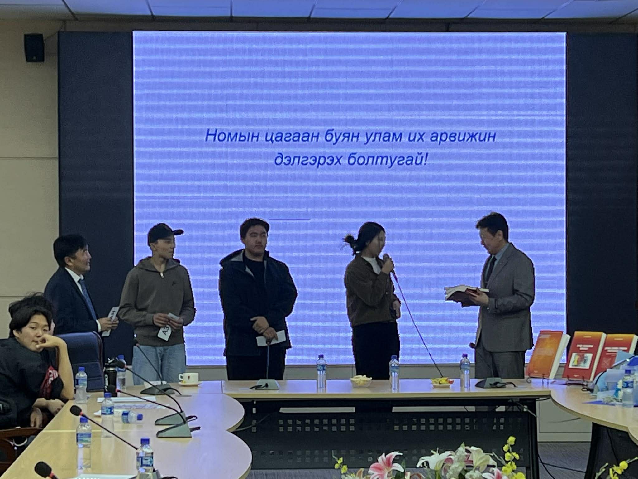 “BOOK BATTLE”, “ОРОЙГҮЙ СҮМ - ТӨГСГӨЛГҮЙ ЭРЭЛХИЙЛЭЛ” сэдэвт тэмцээнийг ШУТТНС-ийн ахлах мэргэжилтэн Б.Эрдэнэцэцэг удирдан хөтөлж, номзүйч С.Нургүл, номын санч Ш.Загдсүрэн, Д.Золзаяа, Н.Отгонжаргал, МИТС-ийн номын санч Б.Бүжинлхам нар хамтран зохион байгуулсан юм.