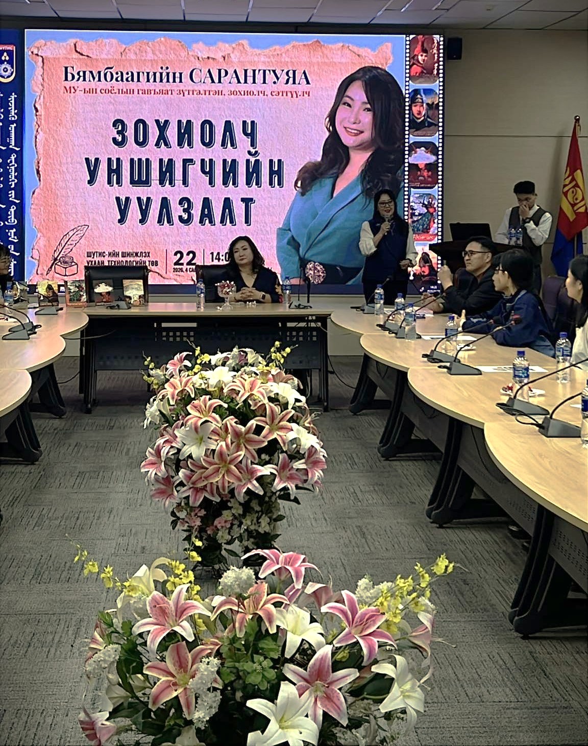 Монгол улсын соёлын гавьяат зүтгэлтэн, зохиолч, сэтгүүлч Б.Сарантуяатай хийх “Зохиолч уншигчийн уулзалт”-ыг зохион байгууллаа. Тус арга хэмжээнд ШУТИС-ийн Хөгжлийн бодлого, дижитал шилжилт эрхэлсэн проректор доктор /Ph.D/, дэд профессор Бадмаанямбуу, ШУТТНС-ийн захирал Т.Энхцацрал болон ШУТИС-ийн багш оюутны төлөөлөл оролцлоо.