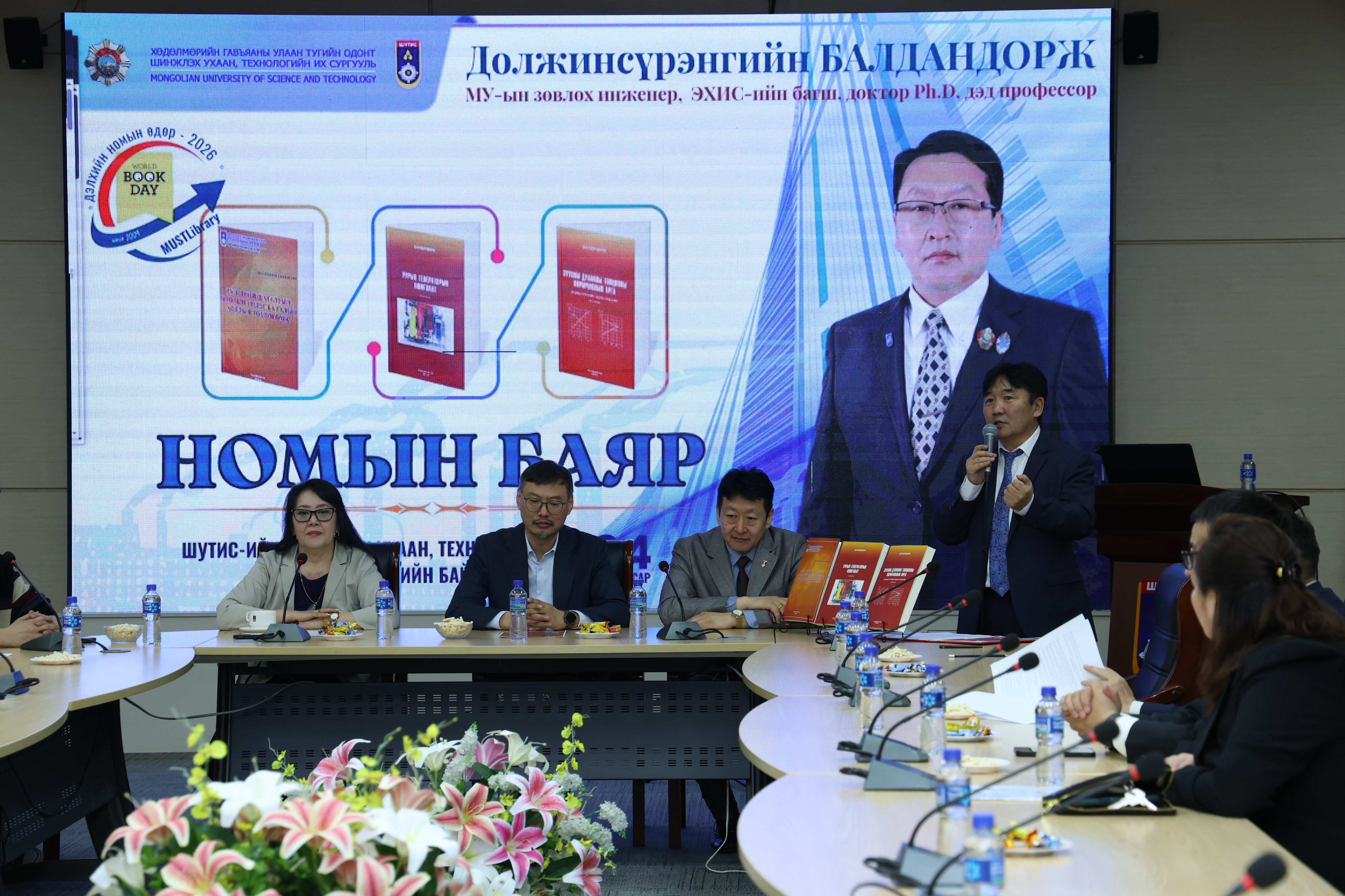 Монгол улсын зөвлөх инженер, ЭХИС-ийн багш, доктор /Ph.D/, дэд профессор Д.Балдандорж “Түлшний шаталтын онолын үндэс ба галын хотлын төхөөрөмж” /2024 он/, “Уурын генераторын ашиглалт “ /2021 он/, “Зуухны дулааны тооцооны нормчлолын арга” /2019 он/ номуудынхаа “Номын баяр”-ыг хийлээ.