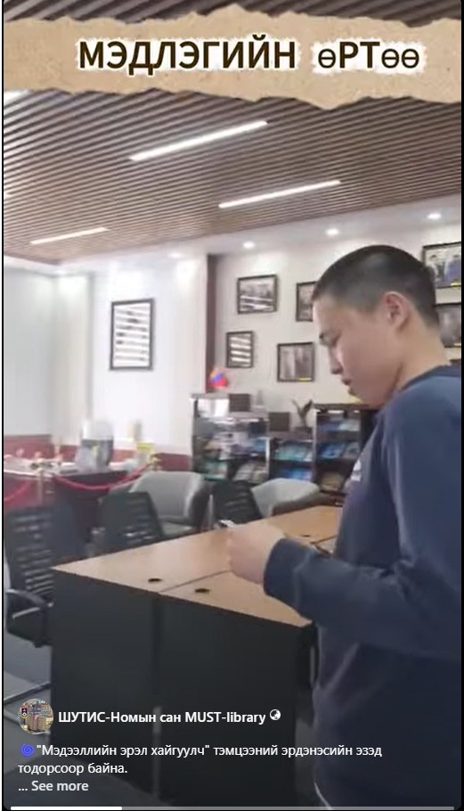 Мөн дэлхийн номын өдрийн хүрээнд ШУТТНС-ийн үйл ажиллагаа, үйлчилгээг сурталчлах зорилгоор ОХҮА болон ГХС-ийн Ш.Эрдэнэзаяа багштай хятад хэлний клубийн оюутнуудтай хамтран богино хэмжээний видео бичлэгүүд хийж номын сангийн фэйж хуудаст байршууллаа.