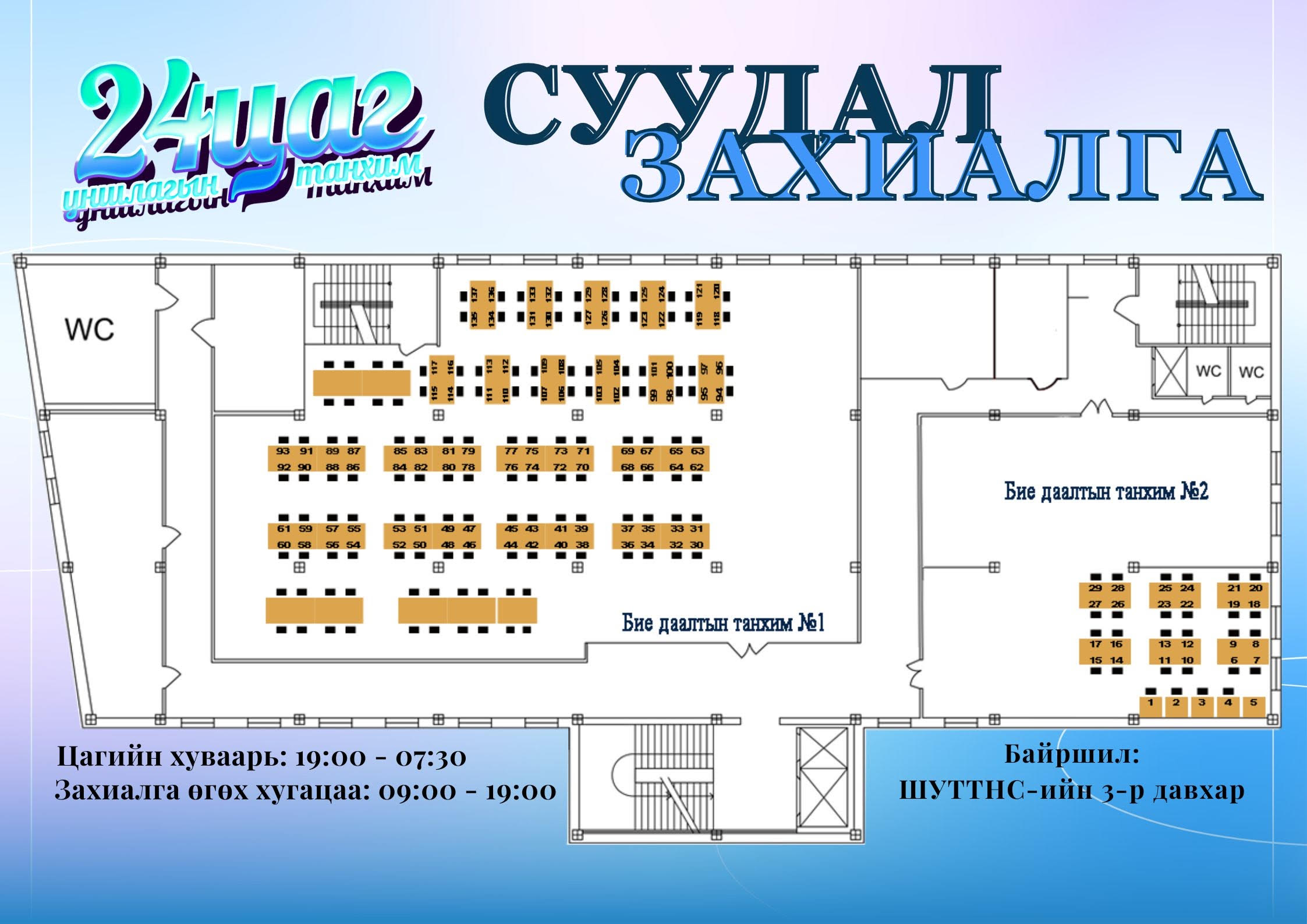1. Оюутан нь 24 цагийн уншлагын танхимаар үйлчлүүлэх захиалгын хүсэлтийг тухайн өдрийн 09:00-21:00 цагийн хооронд өгнө.